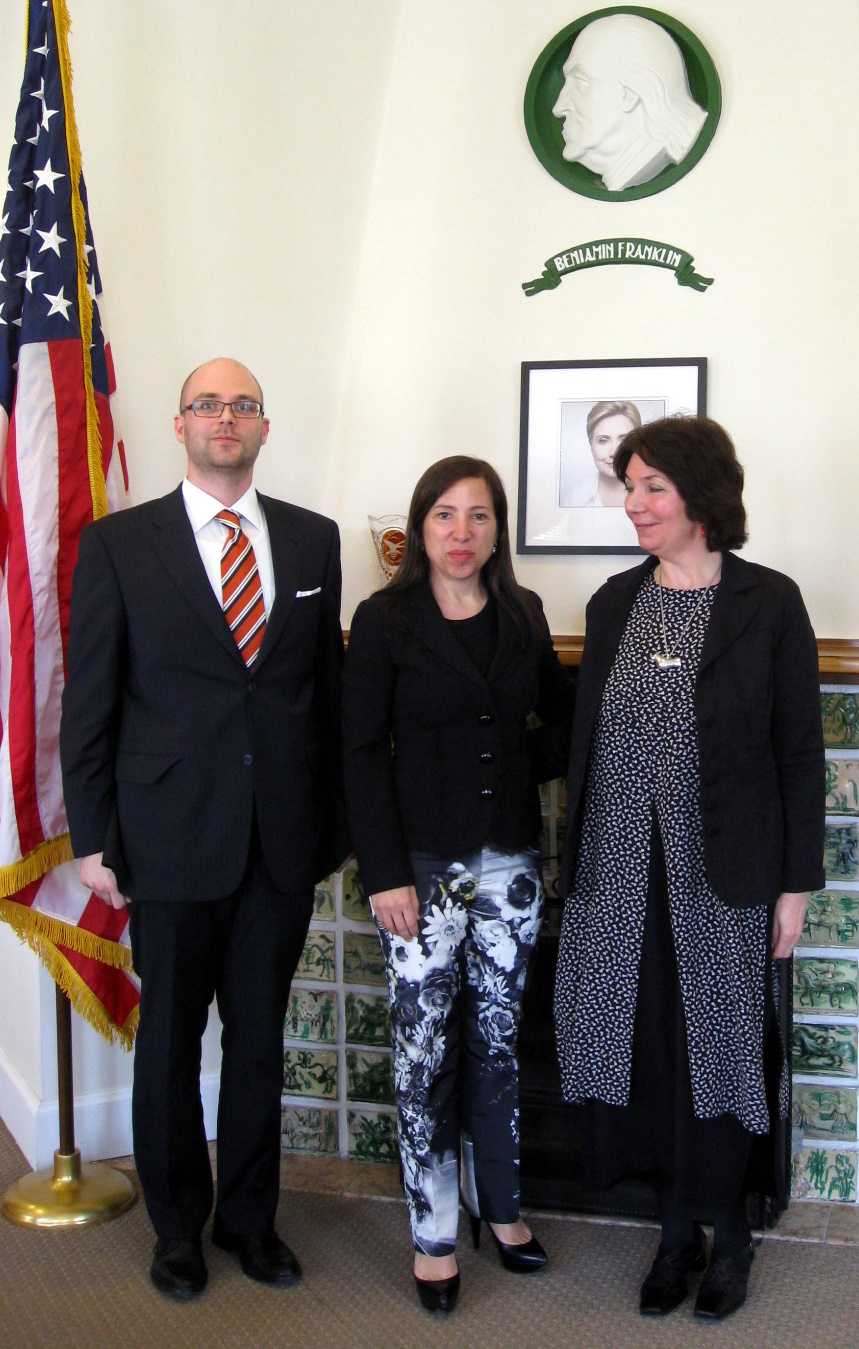 On the 7th of April, 2011, US Ambassador to Hungary Eleni Tsakopoulos Kounalakis met with Sim Shalom’s Rabbi Katalin Kelemen and Vice President Gabor Radvanszki in her office in the US Embassy in Budapest. Topics discussed included the history and present state of Sim Shalom Congregation and of Hungarian Reform Jewry, the opportunities to fight anti-Semitism through education and community life, and the pending reforms in Jewish-governmental relationships in Hungary.